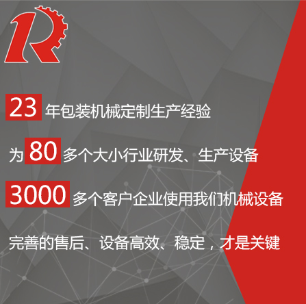 廣州市睿佳機(jī)械設(shè)備有限公司是國內(nèi)專業(yè)從事自動(dòng)化包裝機(jī)械產(chǎn)品,集研發(fā)、生產(chǎn)、銷售、服務(wù)于一體的制造公司,已通過ISO9001:2008質(zhì)量體系認(rèn)證,部分系列產(chǎn)品已通過歐盟CE認(rèn)證。 經(jīng)過多年的發(fā)展,公司專業(yè)生產(chǎn):封尾機(jī),灌裝機(jī),旋蓋機(jī),貼標(biāo)機(jī),包裝機(jī),輸送機(jī),噴碼機(jī),灌裝生產(chǎn)線等機(jī)械設(shè)備。企業(yè)以開發(fā)生產(chǎn)包裝機(jī)械和訂做特殊包裝機(jī)械為主,所生產(chǎn)的包裝機(jī)械在同行和客戶中都得到一致的贊賞,以高技術(shù)和穩(wěn)定的質(zhì)量遠(yuǎn)銷東南亞和歐美。在國內(nèi),也成為多家知名藥廠、食品廠、化妝品廠指定使用產(chǎn)品。 睿佳機(jī)械:“想客戶之所想,急客戶之所急”既是睿佳對廣大客戶的承諾也是睿佳的宗旨,睿佳將與時(shí)代同步、銳意進(jìn)取,以更優(yōu)質(zhì)的服務(wù)回報(bào)廣大客戶對睿佳的信賴和支持。